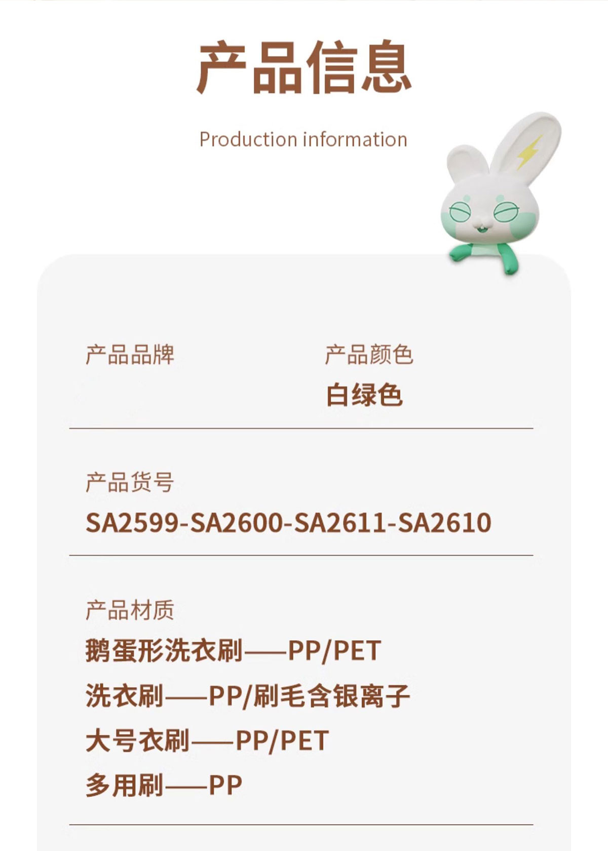 Stuff:ZX-SA2599/ZX-SA2600:PP+PET,ZX-SA2610:PP+刷毛含銀離子,ZX-SA2611:PP