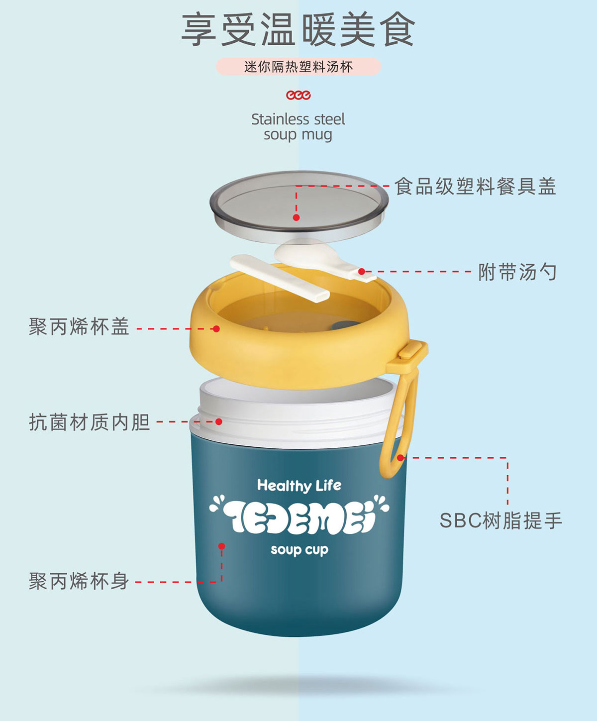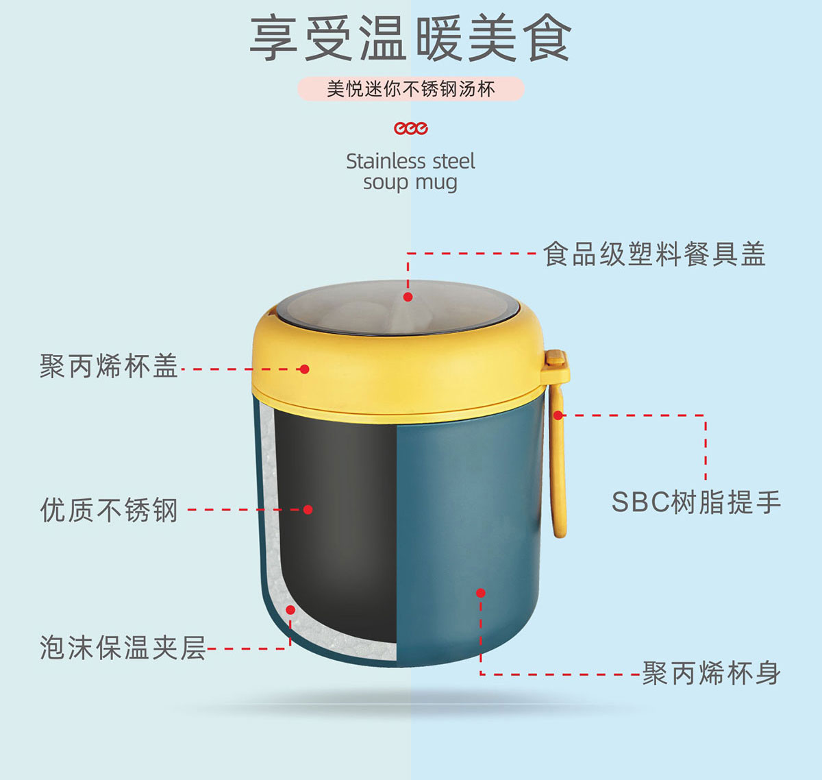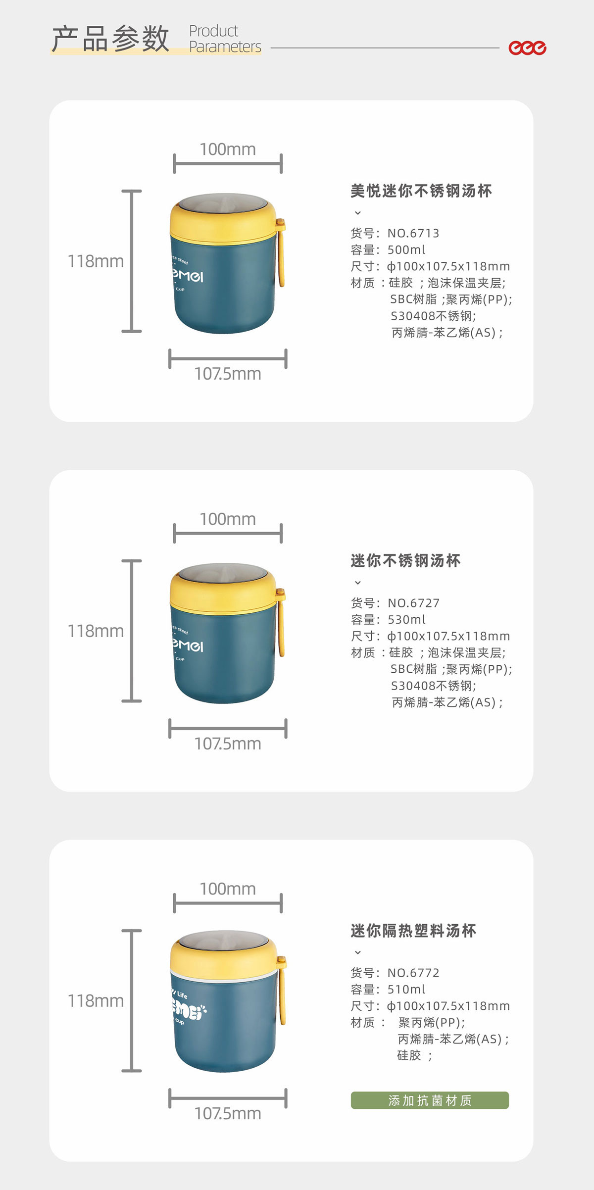 迷你隔熱塑料湯杯500/530/510ml(304不銹鋼/簡(jiǎn)裝304不銹鋼/PP)