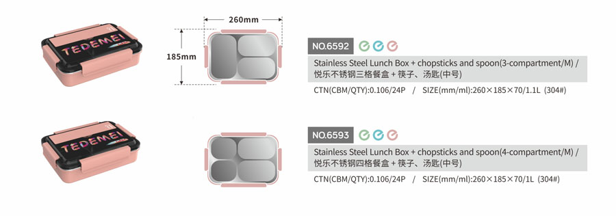 Size: 260*185*70mm,三格:1.1L/四格:1L