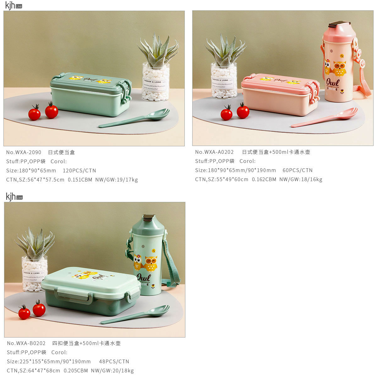 WXA-A0202(日式便當盒+水壺):180*90*65mm/90*190mm