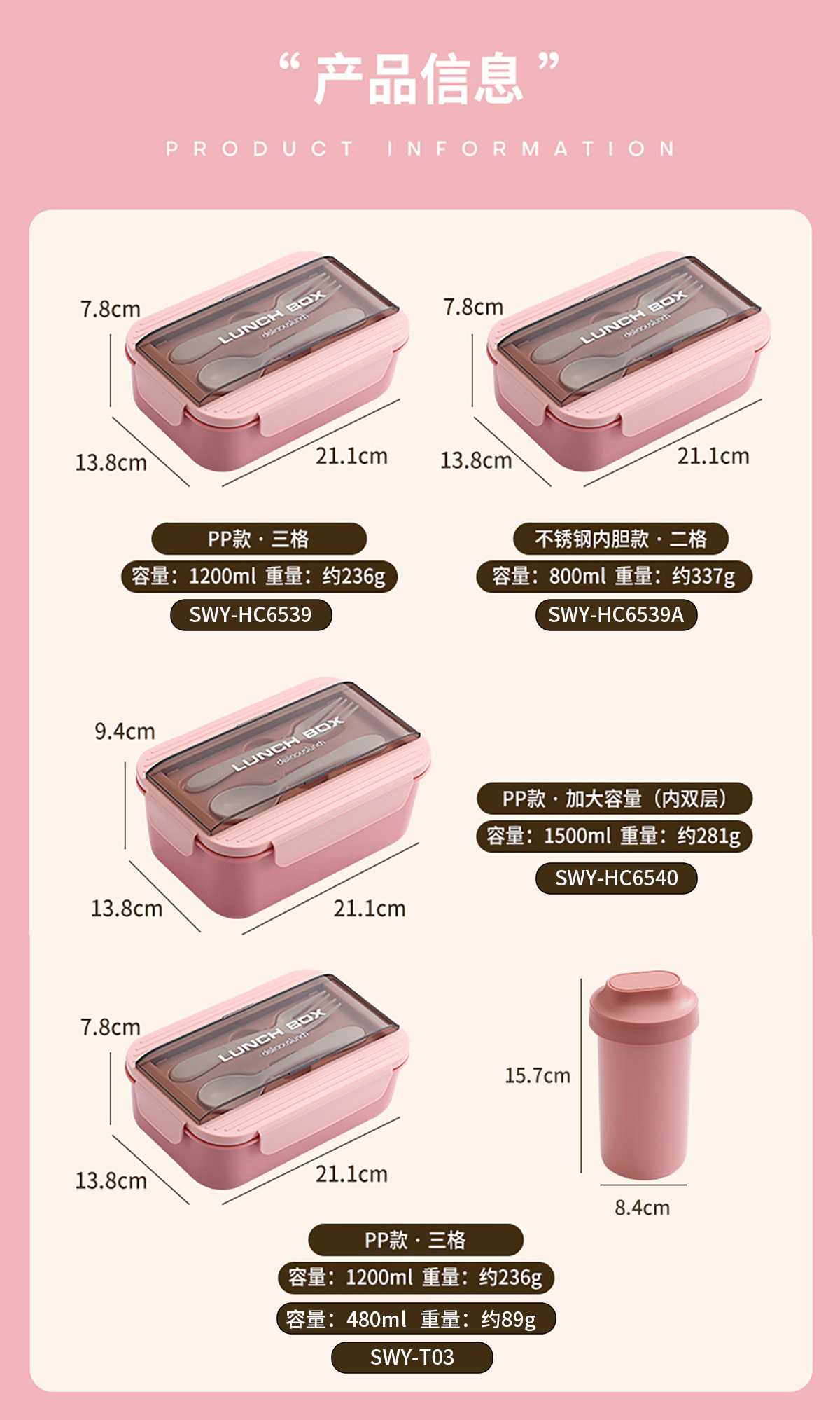 簡(jiǎn)易便當(dāng)盒(PP款/PP加高款/不銹鋼款/套裝款) 老色