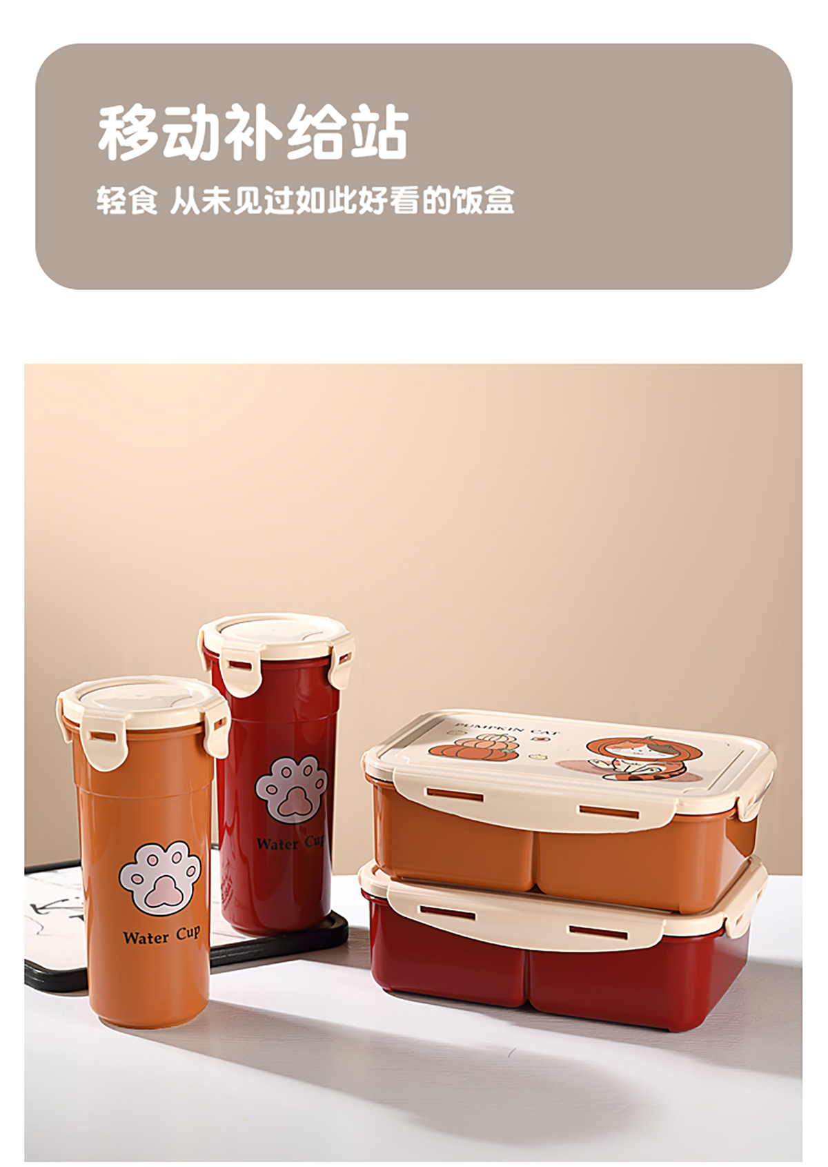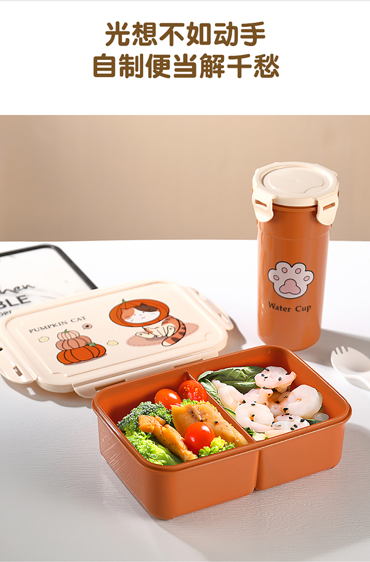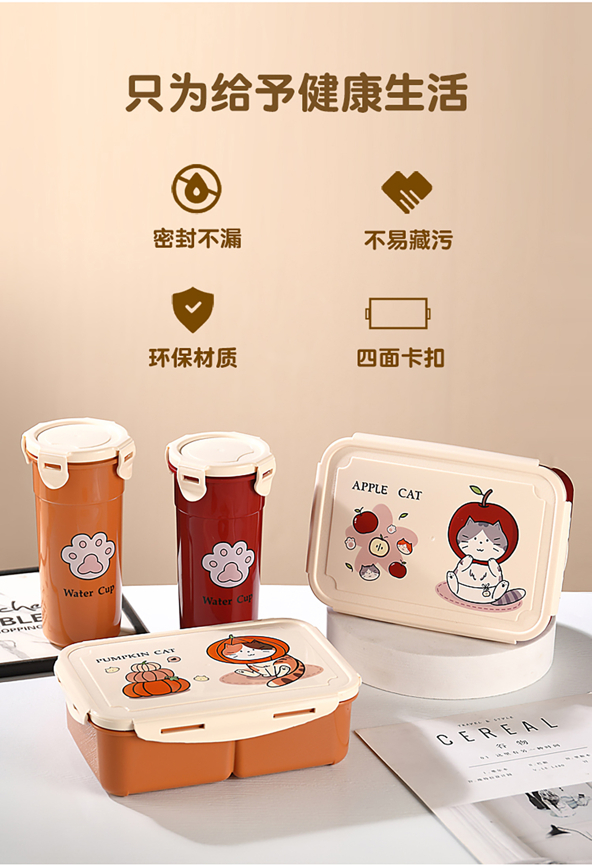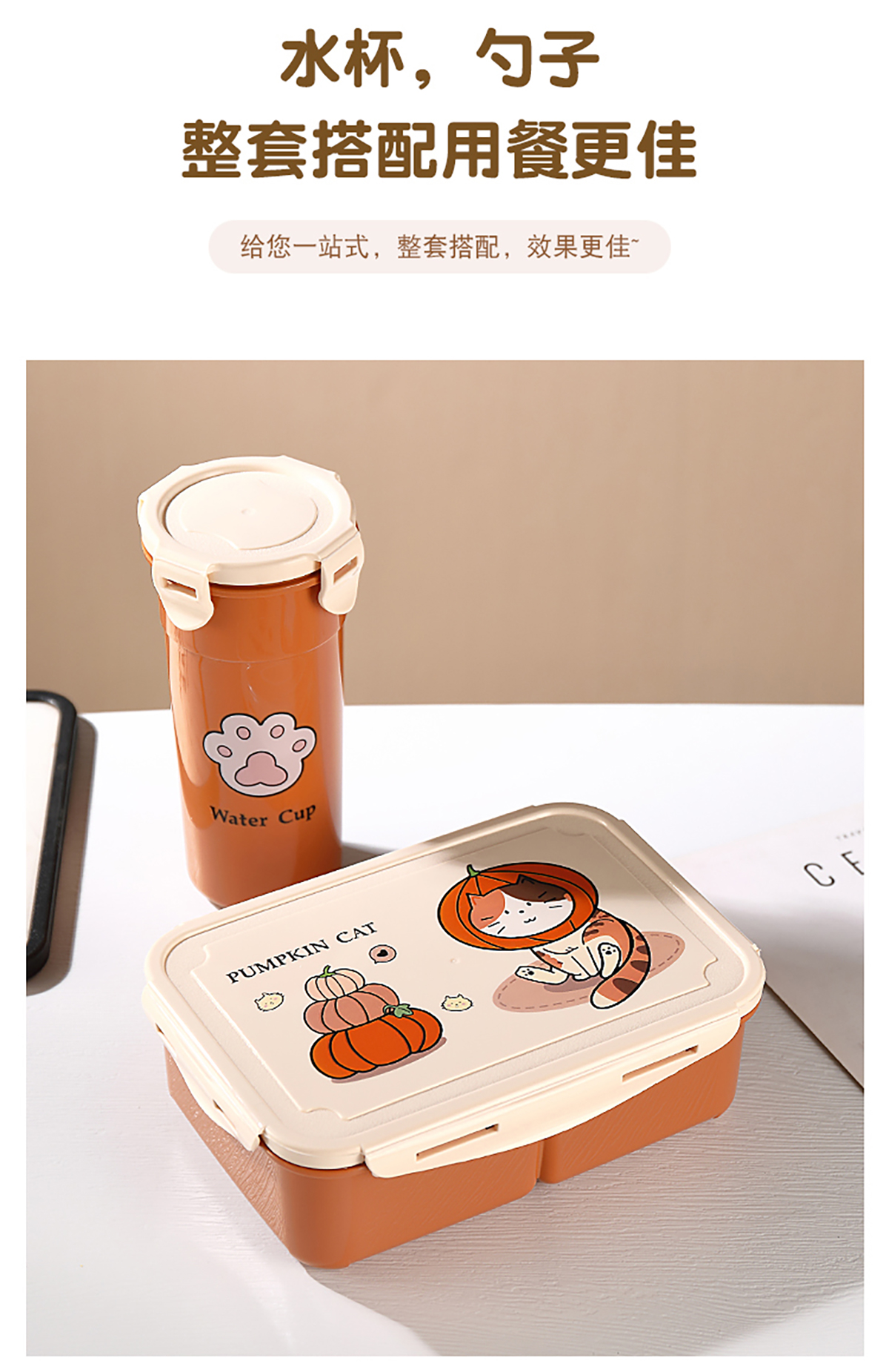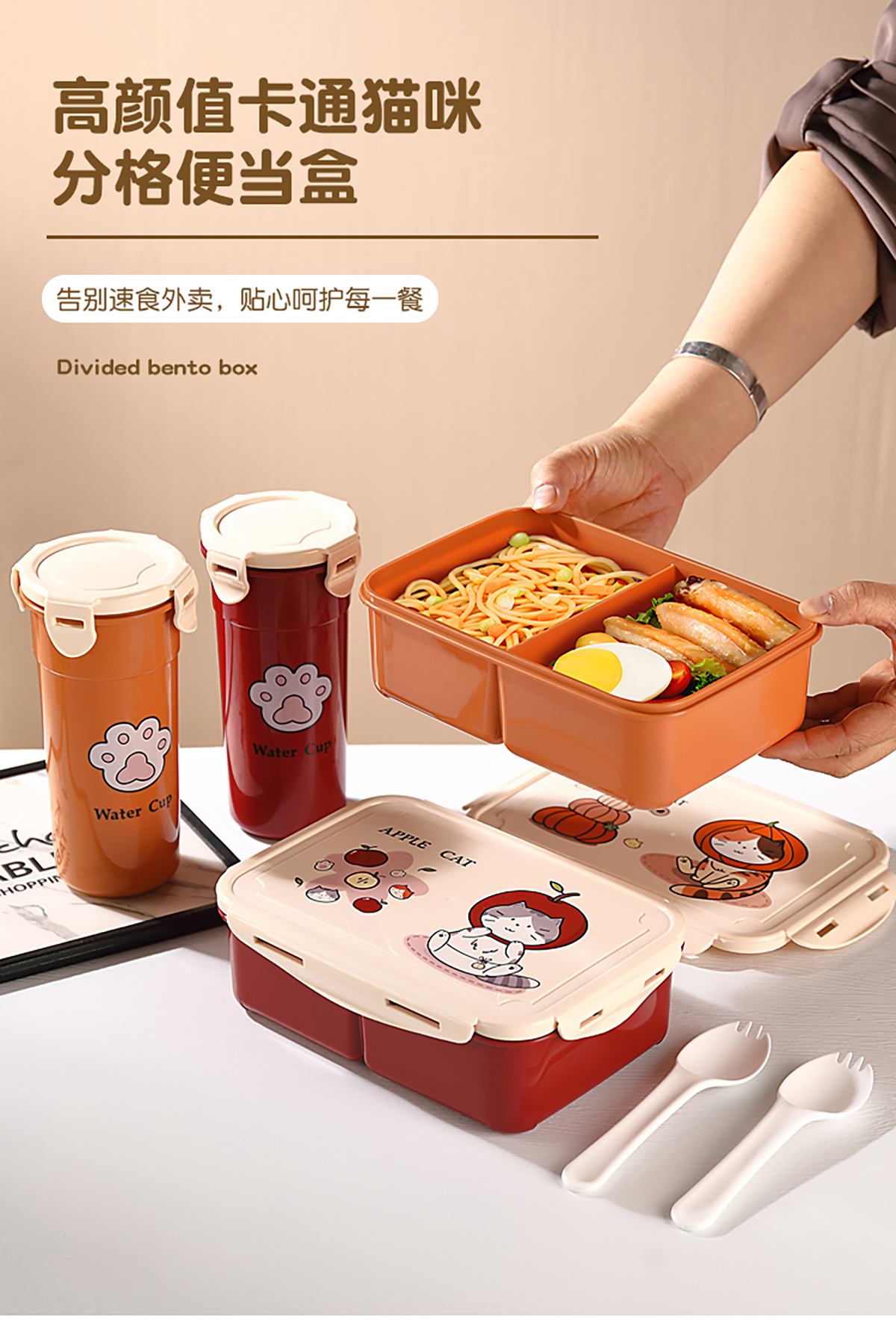 萌貓卡通飯盒(套裝/單個)