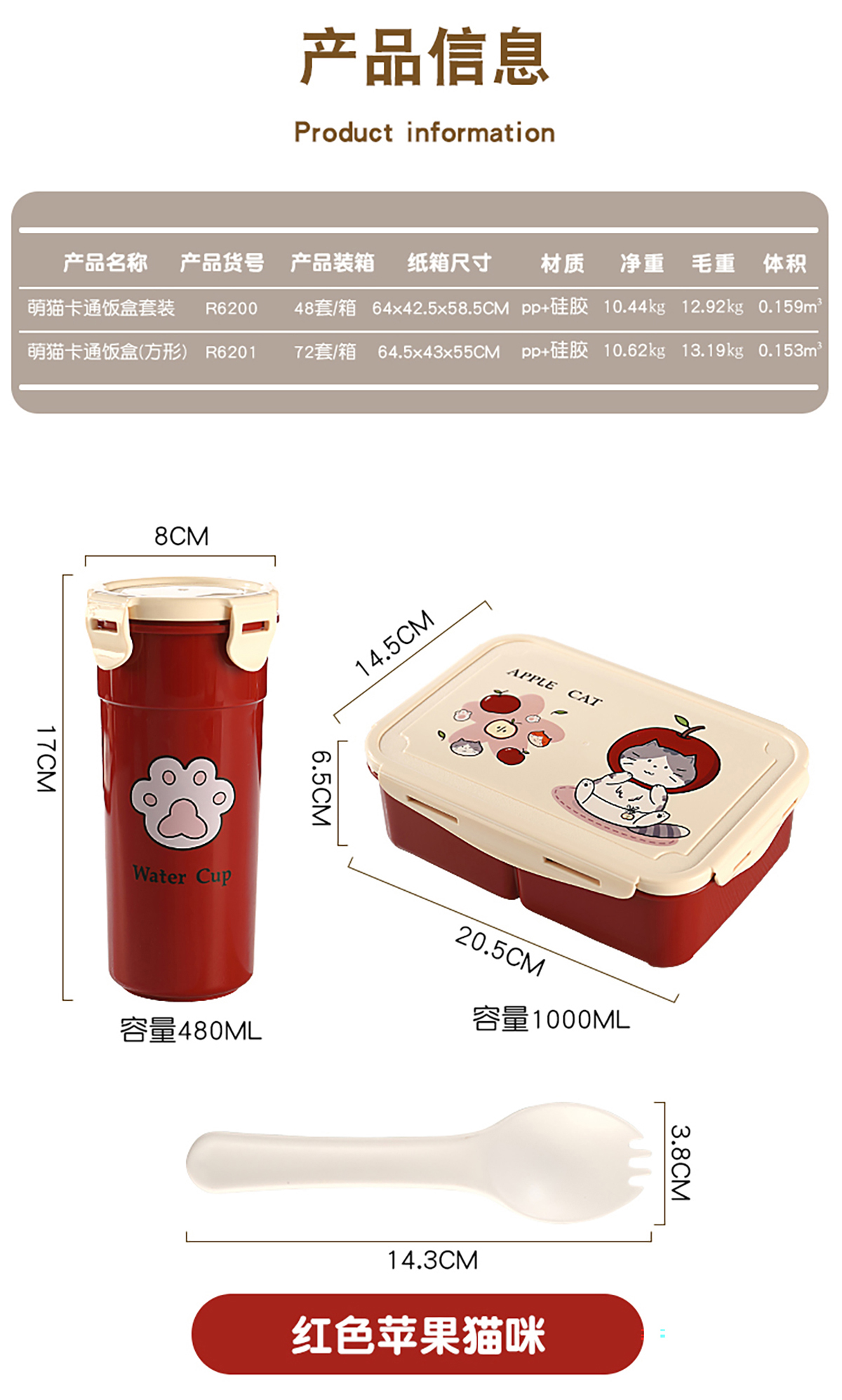 Size: XL-R6200(套裝):205*145*65mm/1000ml 水壺:80*170mm/480ml