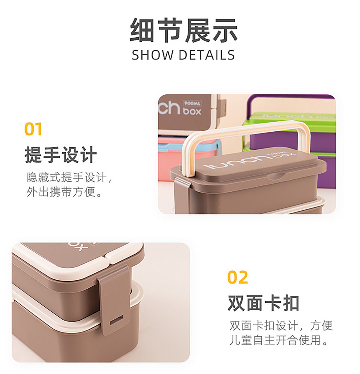 Size: CT-8835(雙層):207*108*127mm/550ml+900ml CT-8836(單層):207*108*84mm/900ml
