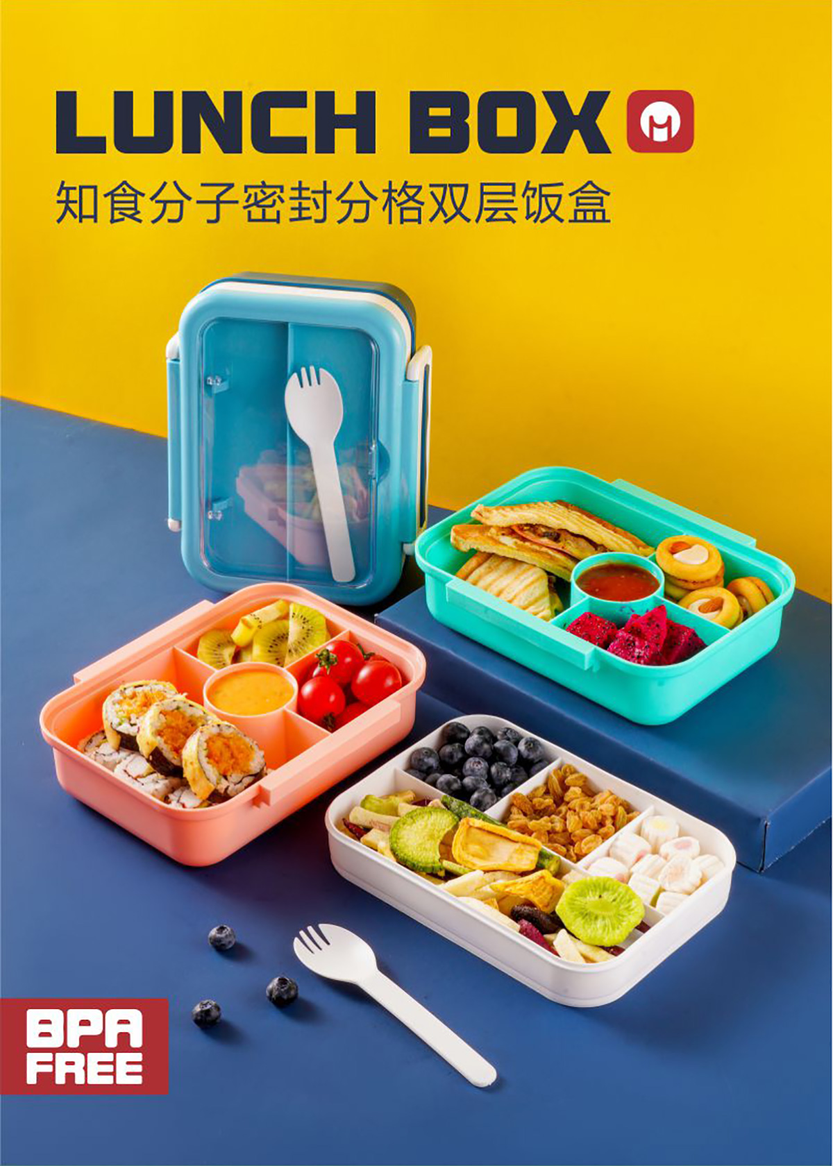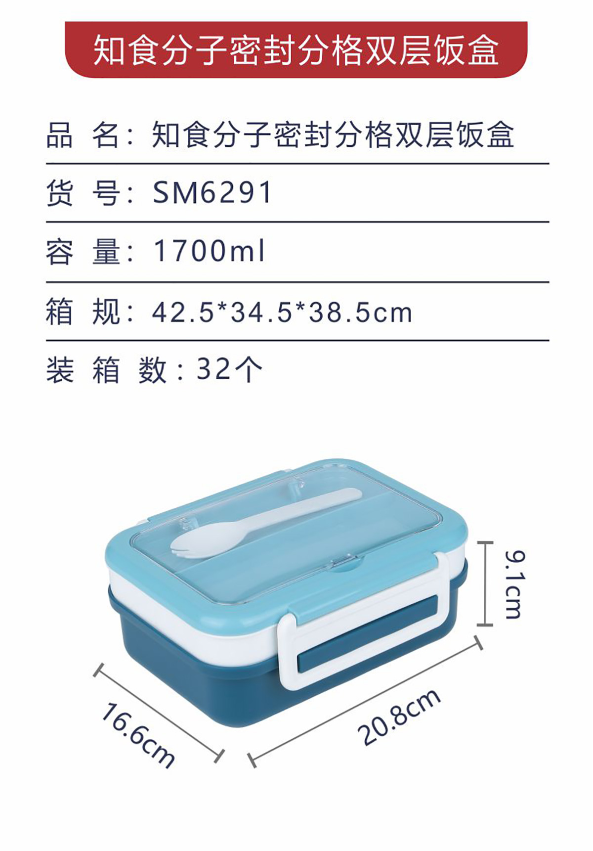 知食分子密封分格雙層飯盒1.7L