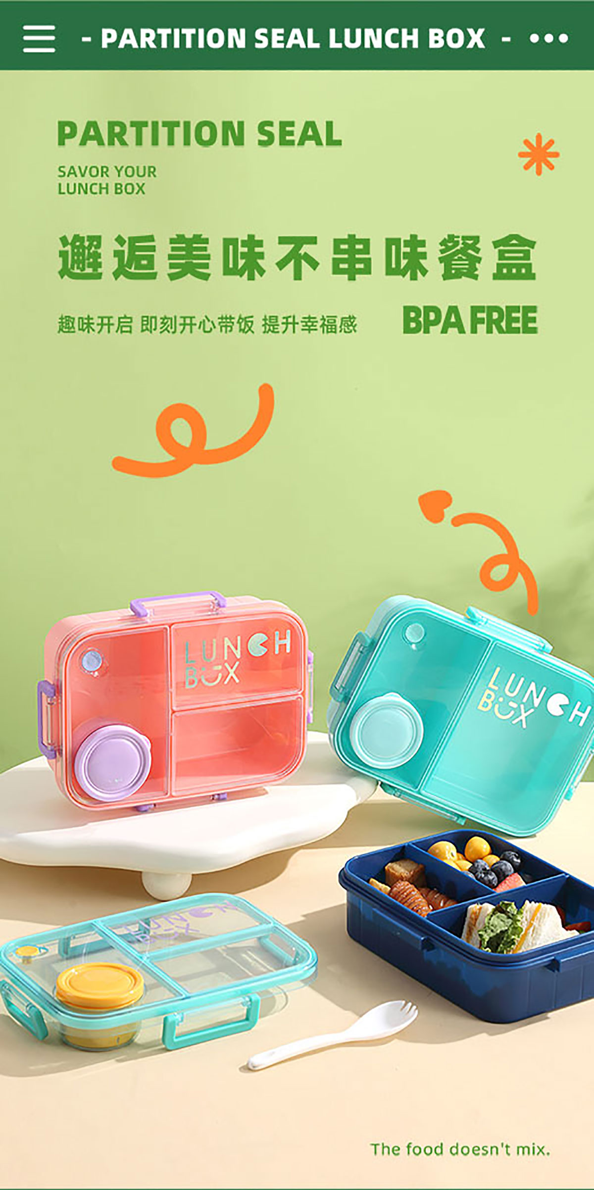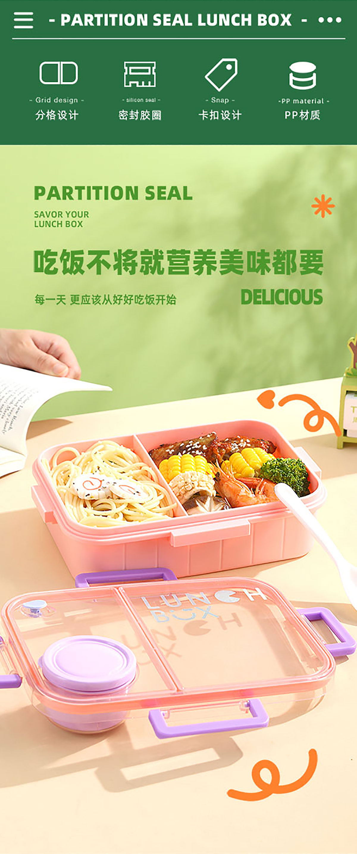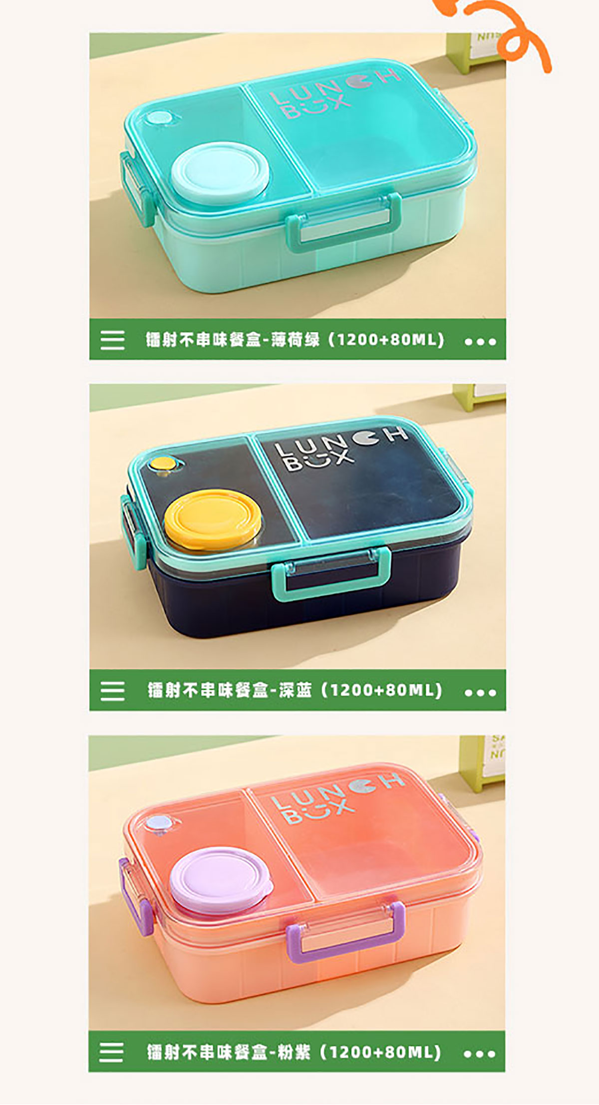 鐳射不串味餐盒(2格/3格1200ml+外置醬料杯80ml+pp勺)