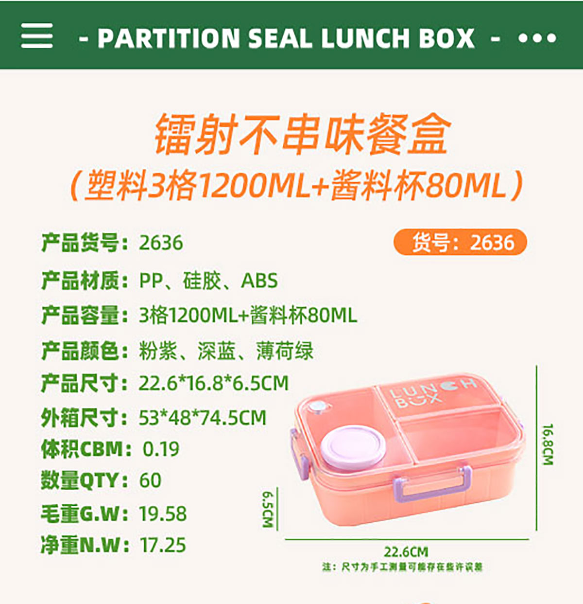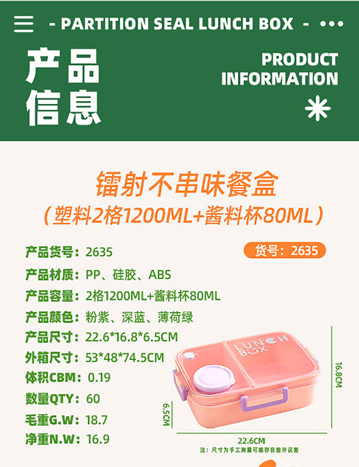 Size: AQX-2635(2格):226*168*65mm