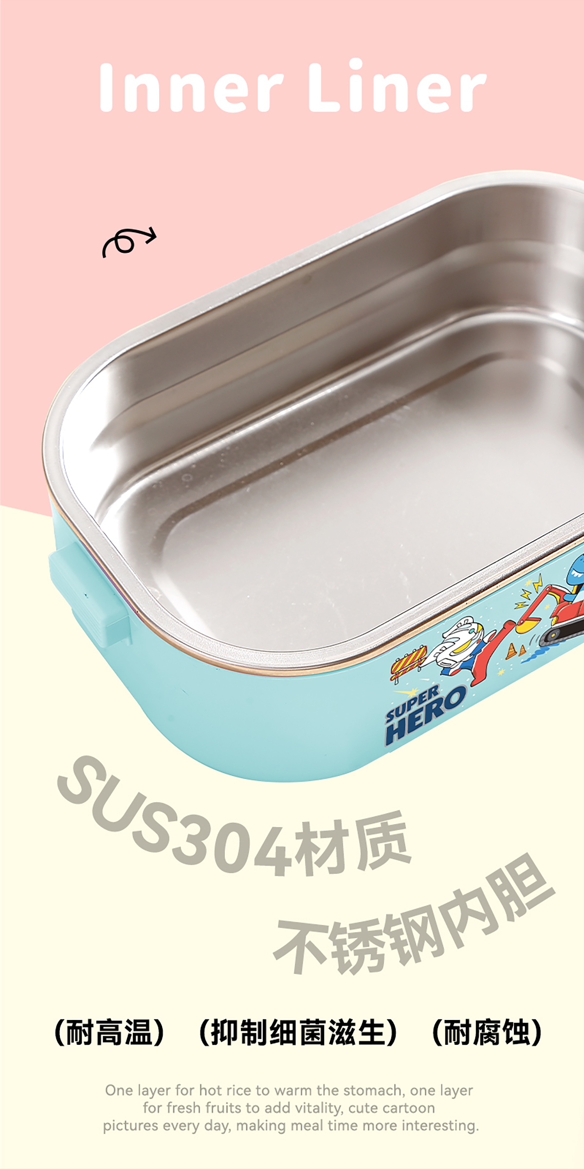 卡通手提密封不銹鋼餐盒(單格900ml/2格850ml+PP碗ml/2格850ml+不銹鋼碗150ml)