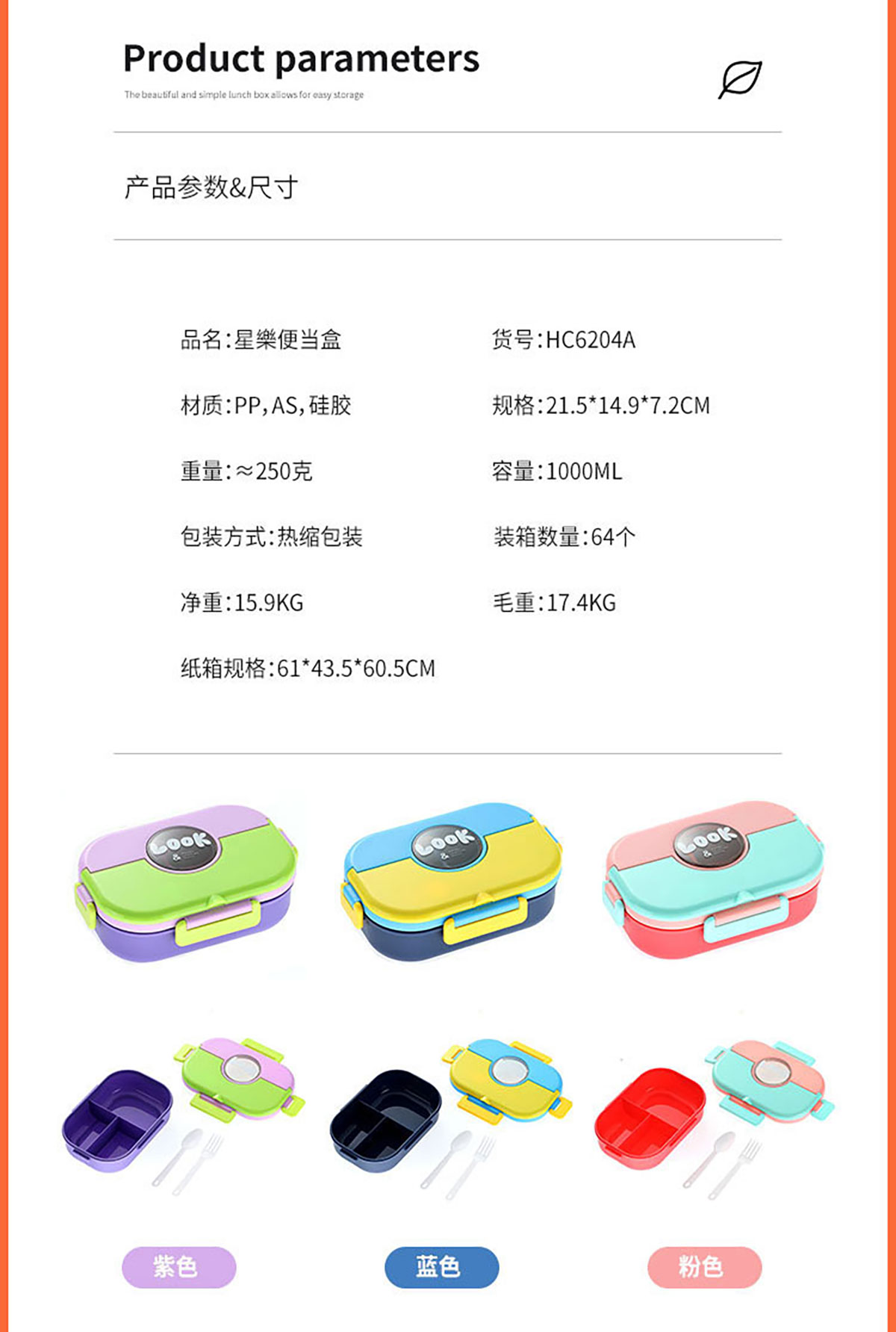 Size: SWY-HC6204A(三格PP款):215*149*72mm/1000ml