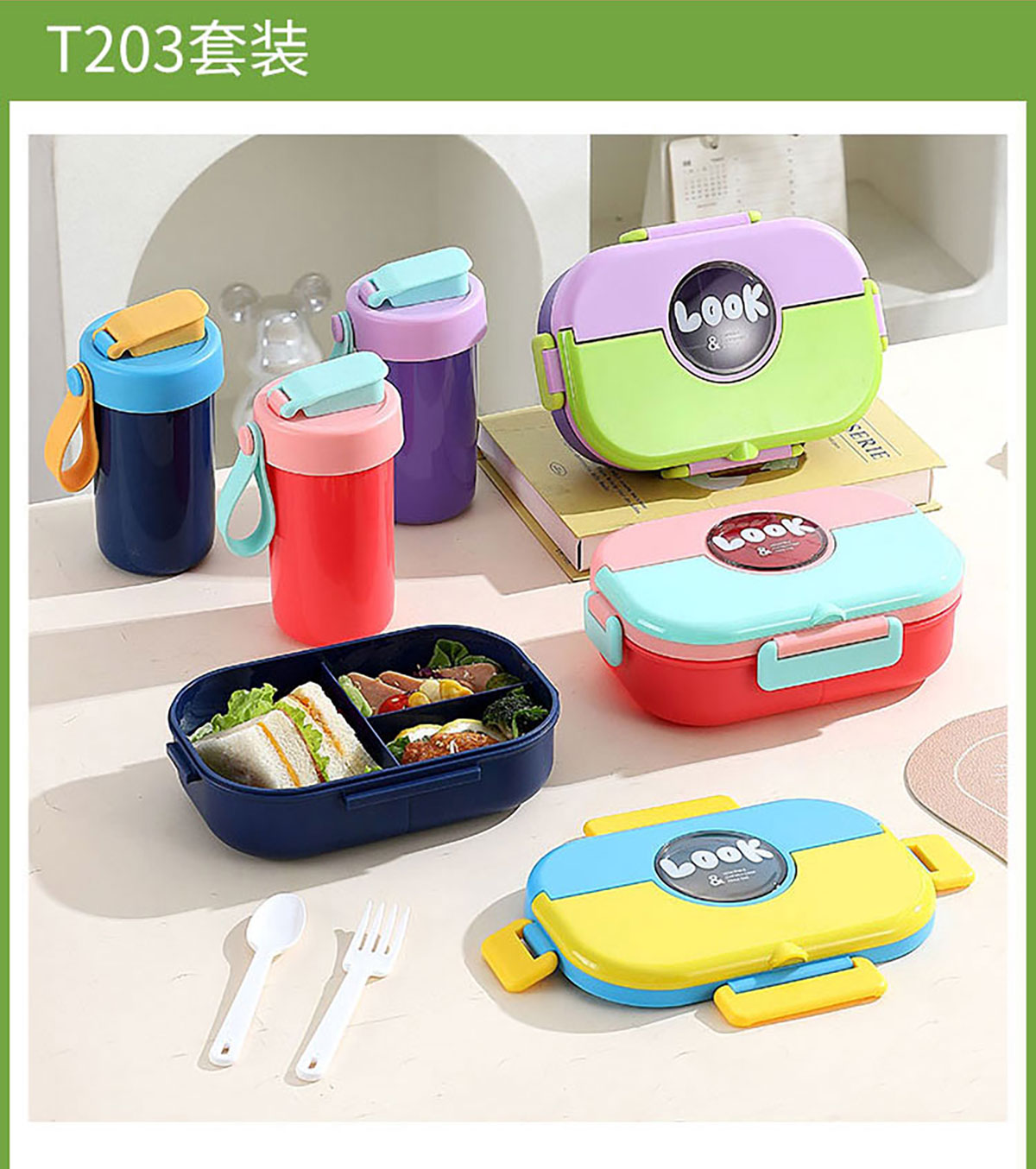 SWY-T203(套裝款):飯盒:215*149*72mm/1000ml 水壺:直徑82*高161mm/480ml