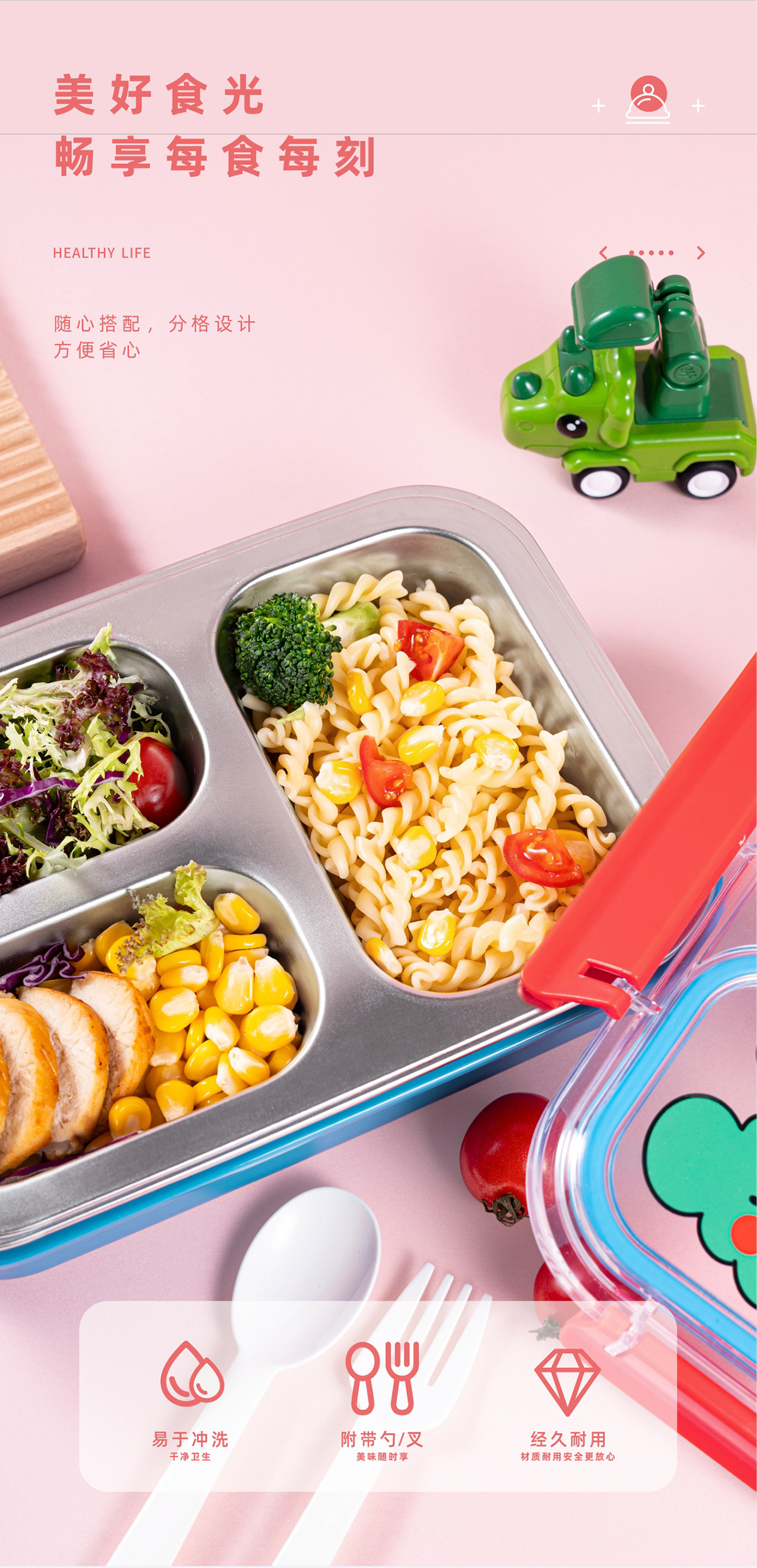 趣繪不銹鋼分格餐盒(帶餐具)